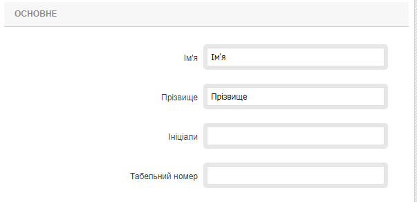 У групі необхідно заповнити поля «Ім'я» - ім'я співробітника, «Прізвище» - прізвище співробітника,