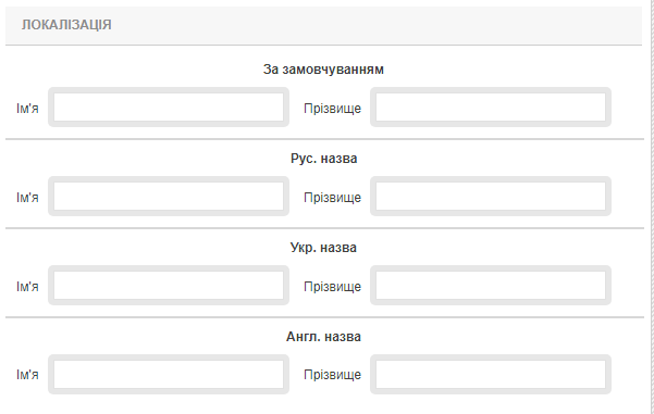 Група локалізація надає можливість вводу особистих даних різними мовами які будуть