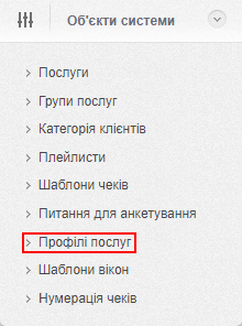 Профілі послуг – надають можливість створення окремих списків послуг, для відображення своєї унікальної структури на точках реєстрації відвідувачів. |